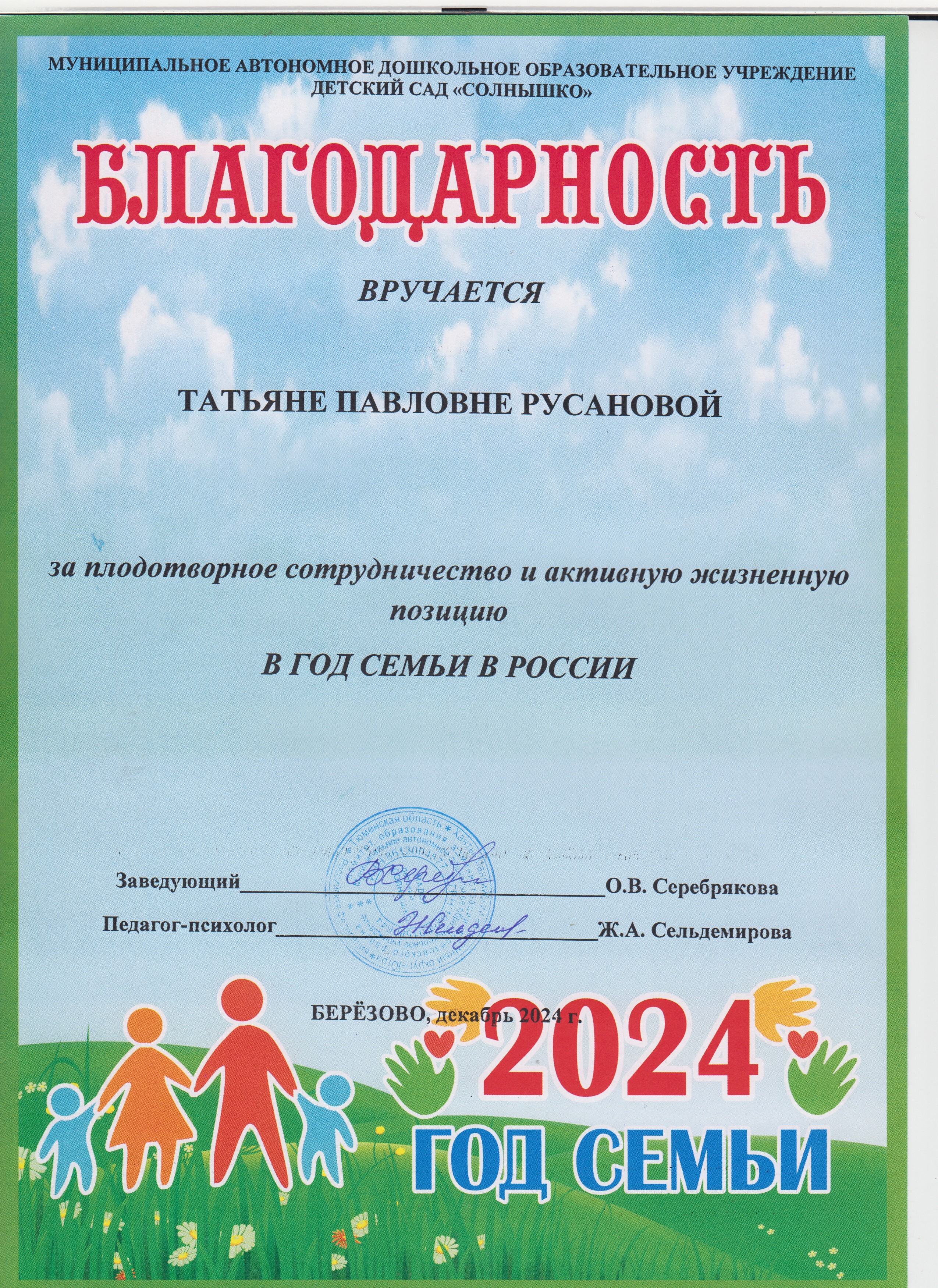 Многие думают, что работа воспитателя ограничена стенами группы. Но для меня это совсем не так. Это профессия, которая выходит далеко за рамки детского сада — в большую жизнь поселка и даже страны.